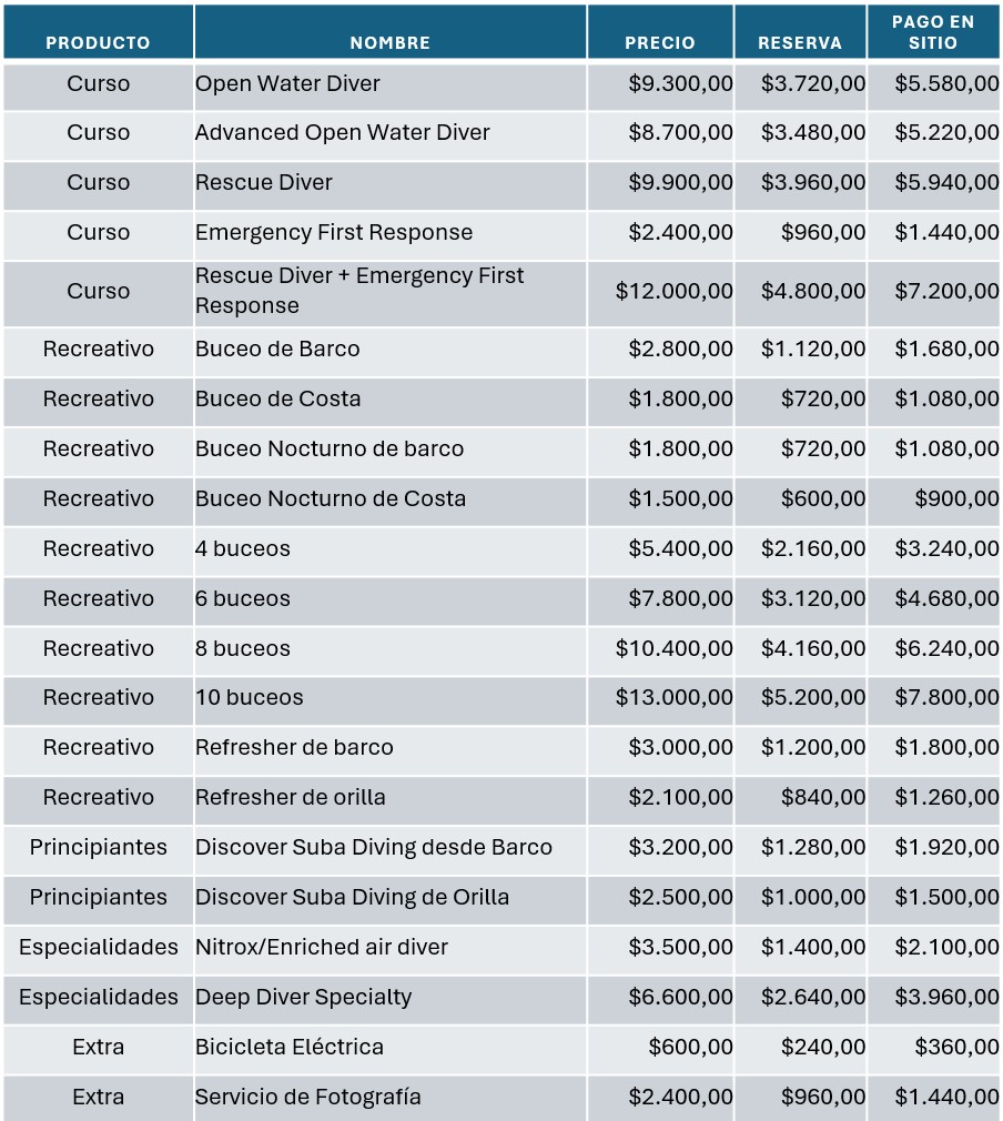 Centro de buceo PADI